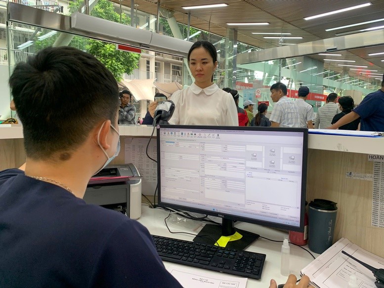 Khi vào viện, người nhà chỉ cần quẹt mã CCCD hoặc thẻ BHYT của bệnh nhân, các thông tin cá nhân cơ bản và tiền sử bệnh sẽ tự động cập nhật. Ngay lúc này, bệnh nhân đã được phân luồng và được các bác sĩ thăm khám. Ảnh: VGP/HM