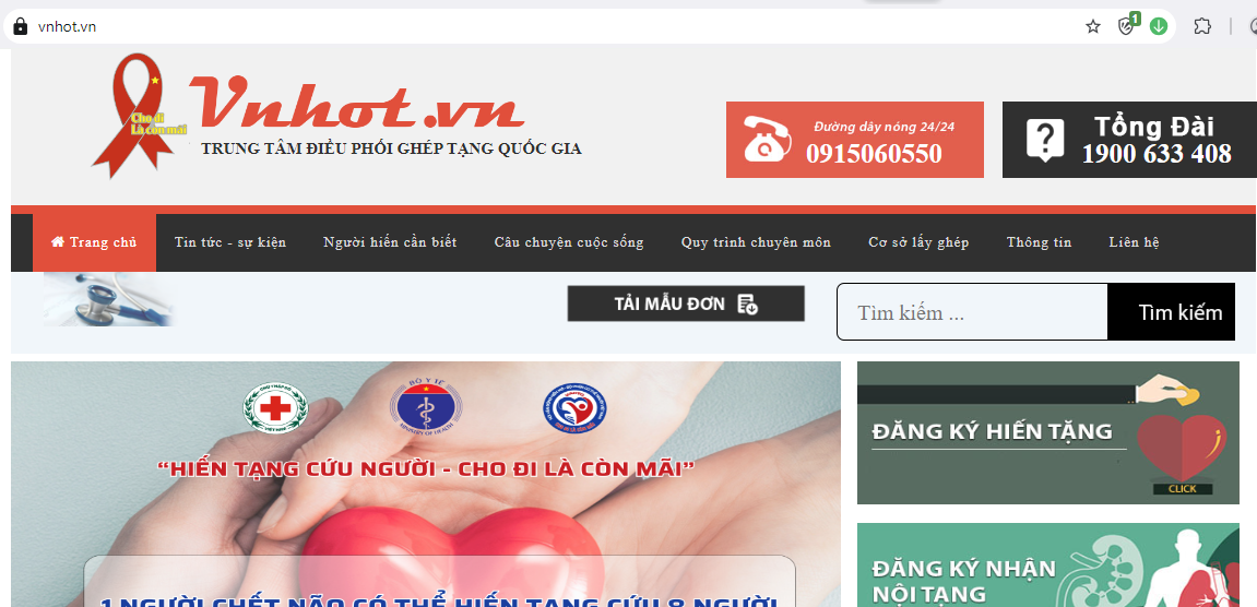 Cổng thông tin điện tử của Trung tâm điều phối ghép tạng Quốc gia (vnhot.vn).