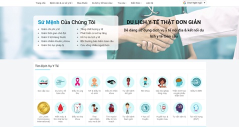 Giao diện web của dự án Global Medical Tourism (https://hospitalsbox.com)