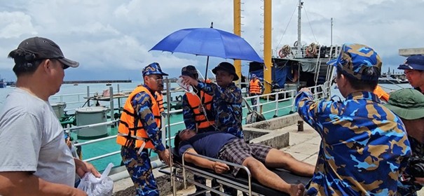 Trong quá trình đánh bắt hải sản, ngư dân Trần Văn Tỷ (sinh năm 1989, đặc khu Phú Quý, Bình Thuận) gặp nạn và được tàu hải quân đưa đi cấp cứu kịp thời.