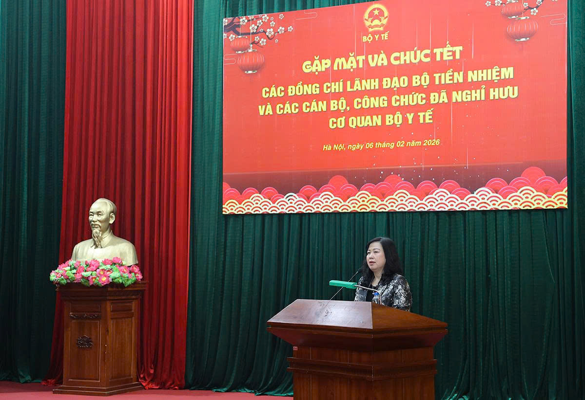 Phát biểu trước các đồng chí lãnh đạo Bộ tiền nhiệm, cán bộ, công chức đã nghỉ hưu của cơ quan Bộ Y tế, Bộ trưởng Bộ Y tế Đào Hồng Lan khẳng định: Bước sang năm 2026, toàn Ngành tập trung triển khai Nghị quyết Đại hội Đảng các cấp, Nghị quyết Đại hội XIV của Đảng, ngành Y tế xác định tiếp tục đổi mới tư duy quản lý; lấy người dân làm trung tâm phục vụ; chủ động phòng bệnh; nâng cao chất lượng và hiệu quả dịch vụ; đẩy mạnh chuyển đổi số; hoàn thiện thể chế; xây dựng hệ thống y tế công bằng, chất lượng, hiệu quả và hội nhập.
