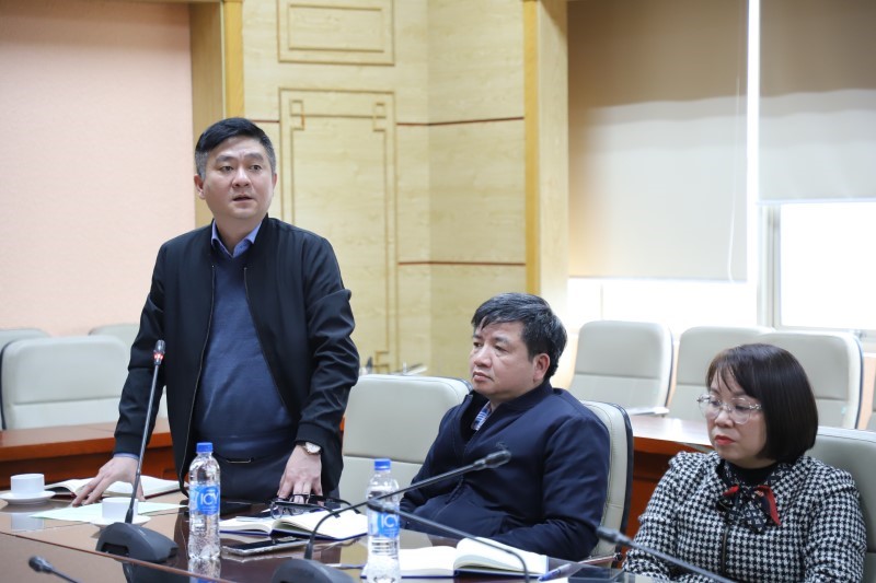 Đại diện các đơn vị báo cáo tiến độ thực hiện nhiệm vụ với Thứ trưởng Bộ Y tế Nguyễn Tri Thức