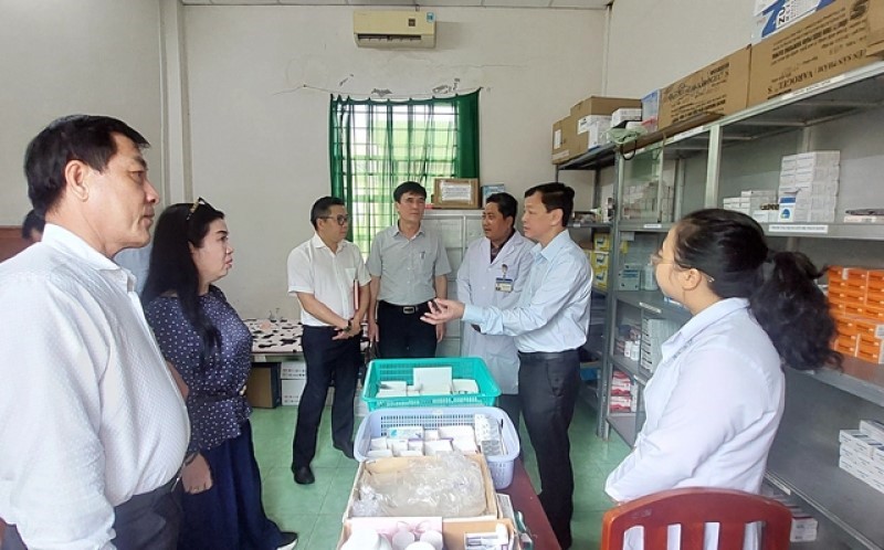 Thứ trưởng Nguyễn Tri Thức và đoàn công tác khảo sát tại Trạm Y tế xã Châu Thới