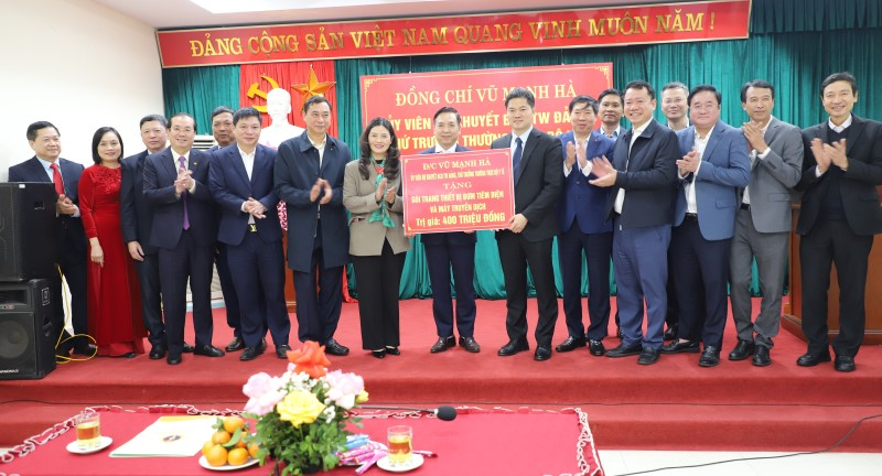 Thứ trưởng Thường trực Bộ Y tế Vũ Mạnh Hà và đoàn công tác tặng Sở Y tế tỉnh Tuyên Quang gói trang thiết bị