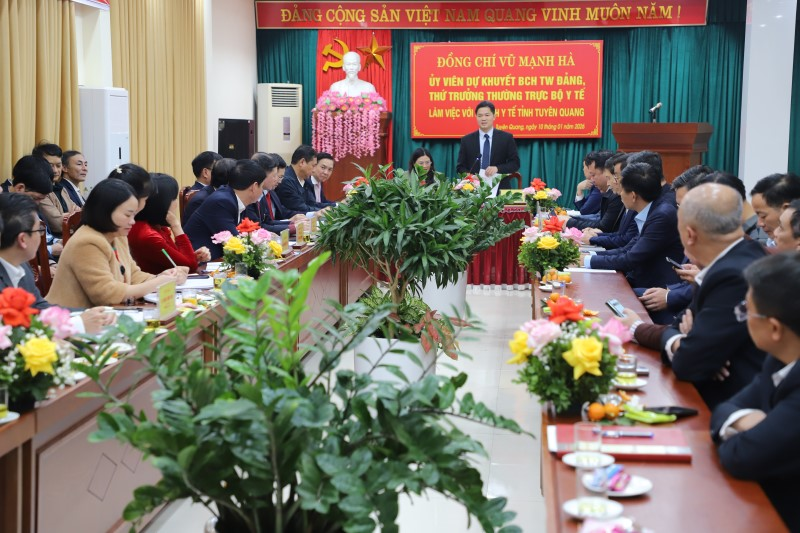 Thứ trưởng Thường trực Bộ Y tế Vũ Mạnh Hà đề nghị các đơn vị chuyên môn thuộc Bộ sớm nghiên cứu, xem xét và phối hợp giải quyết các đề xuất của ngành Y tế Tuyên Quang, hỗ trợ phát huy thế mạnh nguồn dược liệu được trồng và khai thác tại tỉnh, phát triển du lịch gắn với chăm sóc sức khỏe, nhằm tăng cường năng lực y tế địa phương và củng cố hệ thống y tế cơ sở, đáp ứng nhu cầu khám, chữa bệnh của Nhân dân.