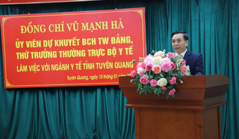 Kết luận buổi làm việc, Thứ trưởng Thường trực Bộ Y tế Vũ Mạnh Hà ghi nhận các ý kiến tại buổi làm việc; đánh giá cao việc ngành Y tế Tuyên Quang trong điều kiện khó khăn về cơ sở hạ tầng, nguồn nhân lực, cán bộ nhân viên y tế đã đạt được nhiều kết quả đáng ghi nhận trên lĩnh vực phòng bệnh, khám sức khỏe cho người dân vùng sâu, vùng xa, kết nối với các bệnh viện tuyến Trung ương. Đồng thời, đồng chí Vũ Mạnh Hà cũng thông tin về những nội dung thuộc về điểm nghẽn, vướng mắc chung của ngành đã được lãnh đạo Bộ chỉ đạo các đơn vị chuyên môn tham mưu xây dựng chính sách, thể chế, trình Trung ương, Chính phủ, Quốc hội về giải pháp theo gỡ, trong đó có thực hiện triển khai Nghị quyết 72-NQ/TW của Bộ Chính trị, Luật Phòng bệnh, Luật Dân số và hai Nghị quyết vừa được thông qua tại kỳ họp thứ 10 Quốc hội khóa XV.