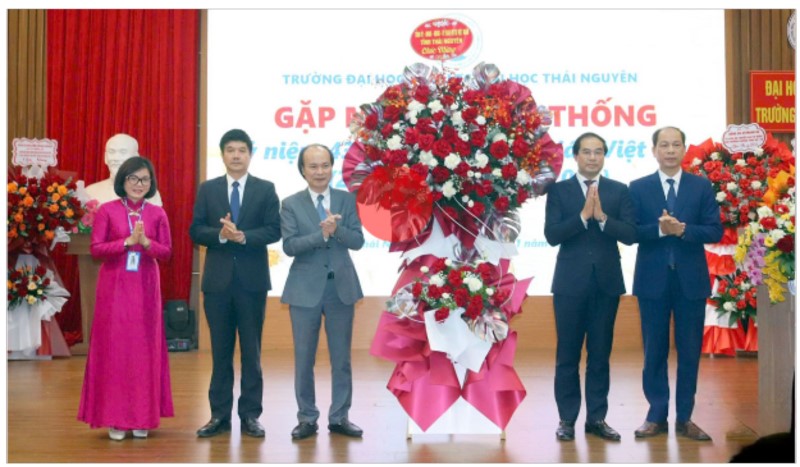 Nhân dịp này, Thứ trưởng Thường trực Vũ Mạnh Hà và Bí thư Tỉnh ủy  Thái Nguyên Trịnh Xuân Trường tặng lẵng hoa chúc mừng Nhà trường.