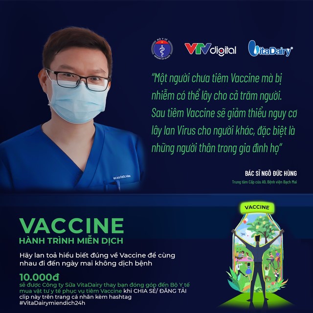 Tiếp tục chuỗi video clip Vaccine - Hành trình miễn dịch do Bộ Y tế, VTV Digital và Công ty Cổ phần Sữa VitaDairy phối hợp sản xuất, trong video clip số 2, bác sĩ Ngô Đức Hùng, chuyên gia hồi sức tích cực của Trung tâm Cấp cứu A9, Bệnh viện Bạch Mai, người vừa từ các tâm dịch Hà Nam, Bắc Giang trở về, sẽ lý giải cụ thể về vấn đề này.