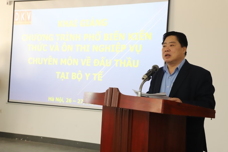 Phát biểu khai mạc, đồng chí Nguyễn Anh Tuấn, Phó Chánh Văn phòng Bộ Y tế khẳng định: Lớp tập huấn có ý nghĩa hết sức thiết thực. Thông qua chương trình, các học viên sẽ được hệ thống hóa kiến thức nền tảng, cập nhật những điểm mới của Luật Đấu thầu, Nghị định, Thông tư hướng dẫn, đồng thời được trao đổi, giải đáp các vướng mắc phát sinh trong thực tiễn, qua đó chuẩn bị tốt nhất cho kỳ thi cấp Chứng chỉ nghiệp vụ chuyên môn về đấu thầu trong thời gian tới.