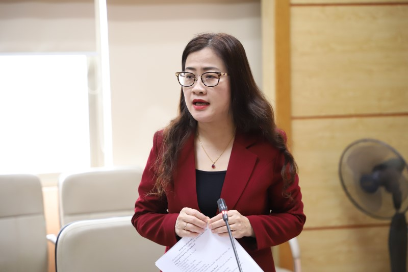 Bà Trần Thị Trang, Vụ trưởng Vụ Bảo hiểm Y tế phát biểu