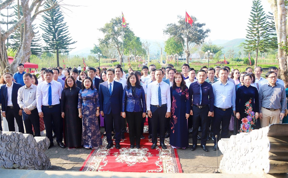 Bộ trưởng Bộ Y tế Đào Hồng Lan cùng đoàn công tác dâng hương tại khu mộ Đại danh y Hải Thượng Lãn Ông Lê Hữu Trác ở thôn Hải Thượng (xã Hương Sơn).