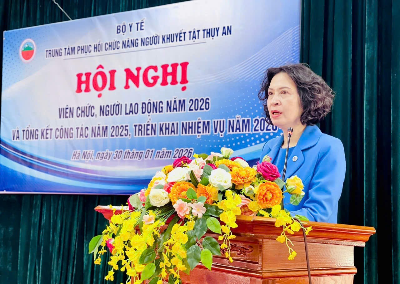 Thứ trưởng Bộ Y tế Nguyễn Thị Liên Hương dự Hội nghị viên chức, người lao động Trung tâm Phục hồi chức năng người khuyết tật Thụy An năm 2026