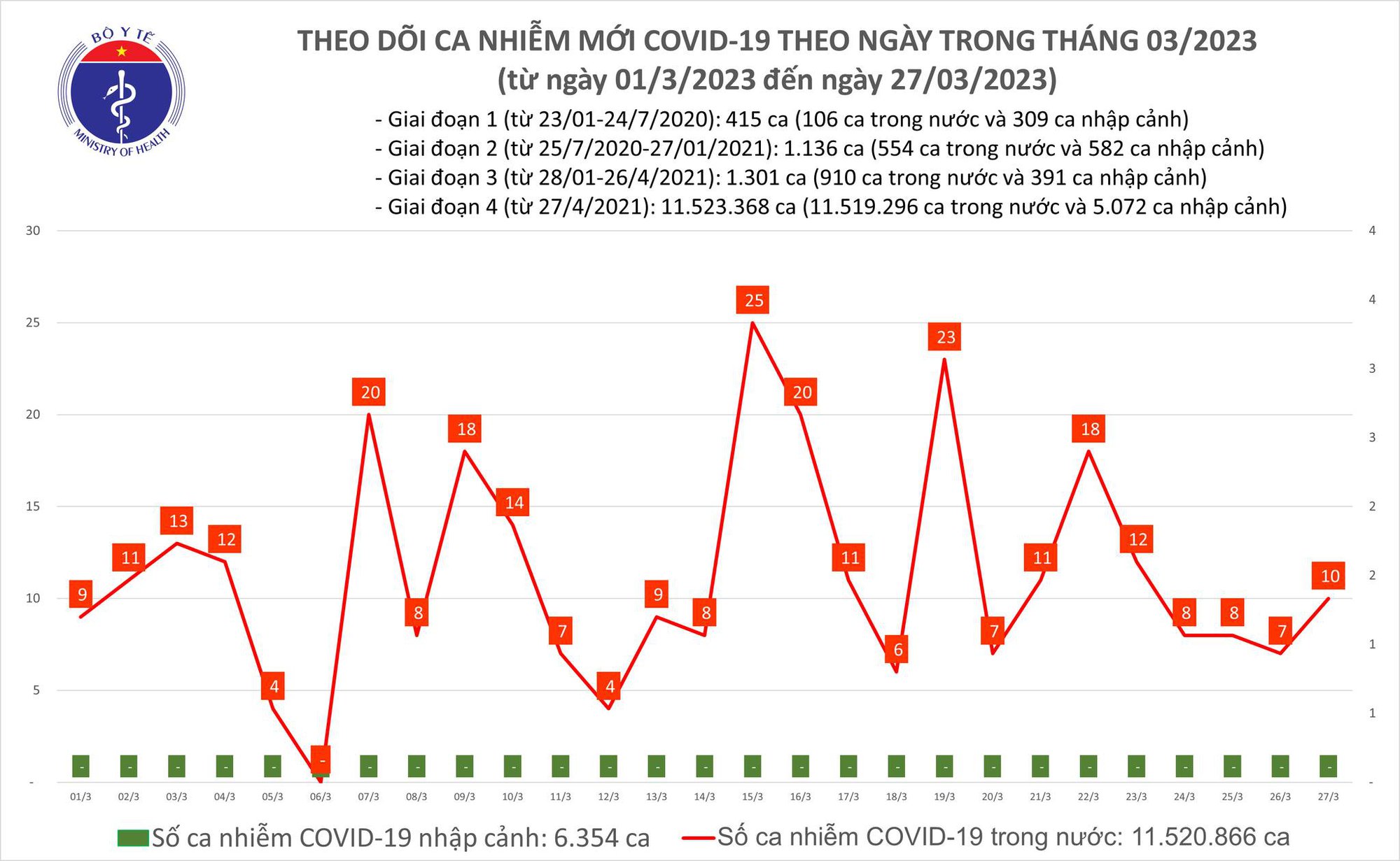 Bản tin phòng chống dịch COVID-19 ngày 27/3 của Bộ Y tế