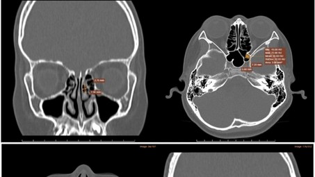 Kết quả chụp CT-Scanner xoang cho thấy hình ảnh viêm đa xoang hàm mặt, dày nhẹ niêm mạc cuốn mũi dưới hai bên, polyp xoang bướm trái, xoang hơi cuốn mũi giữa bên trái. Hình ảnh nội soi mũi phát hiện tình trạng viêm mũi xoang dị ứng.