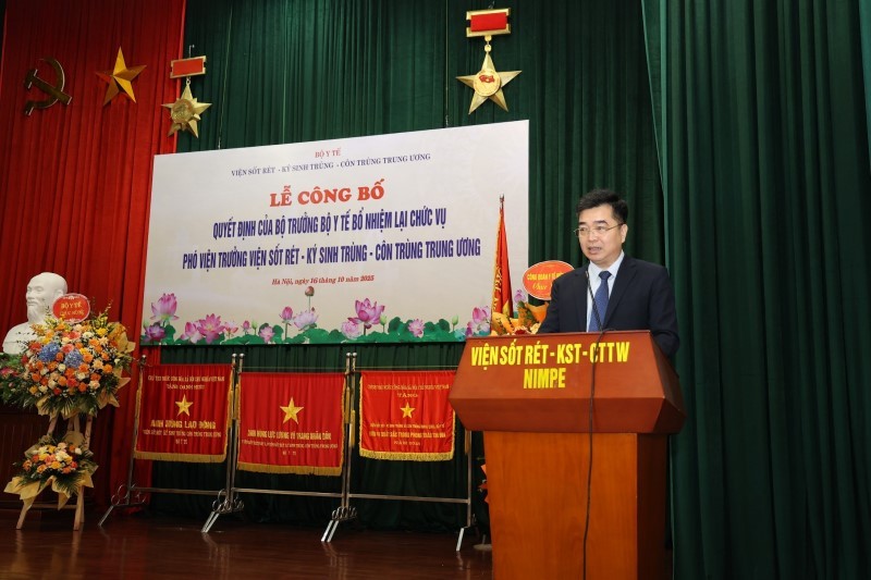 Sáng 16/10/2025, PGS.TS Nguyễn Thị Liên Hương, Thứ trưởng Bộ Y tế dự và trao Quyết định bổ nhiệm lại cán bộ tại Viện Sốt rét - Ký sinh trùng - Côn trùng Trung ương đối với Phó Viện trưởng Trần Quang Phục.